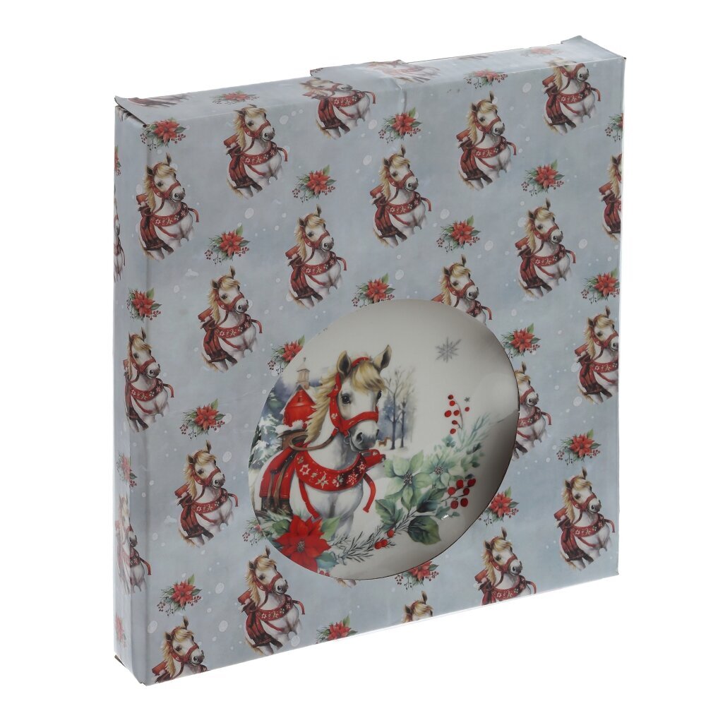Праздничное блюдо в форме ёлочки с новогодним декором и символом 2026 года — изящной лошадкой — станет прекрасным дополнением праздничного интерьера или оригинальным подарком к Новому году. Изготовленное с вниманием к деталям, оно украшено яркими зимними элементами: снежинками, веточками и праздничными акцентами, создающими волшебное настроение. Блюдо упаковано в стильную подарочную коробку, что делает его готовым решением для подарка родным, коллегам или друзьям.