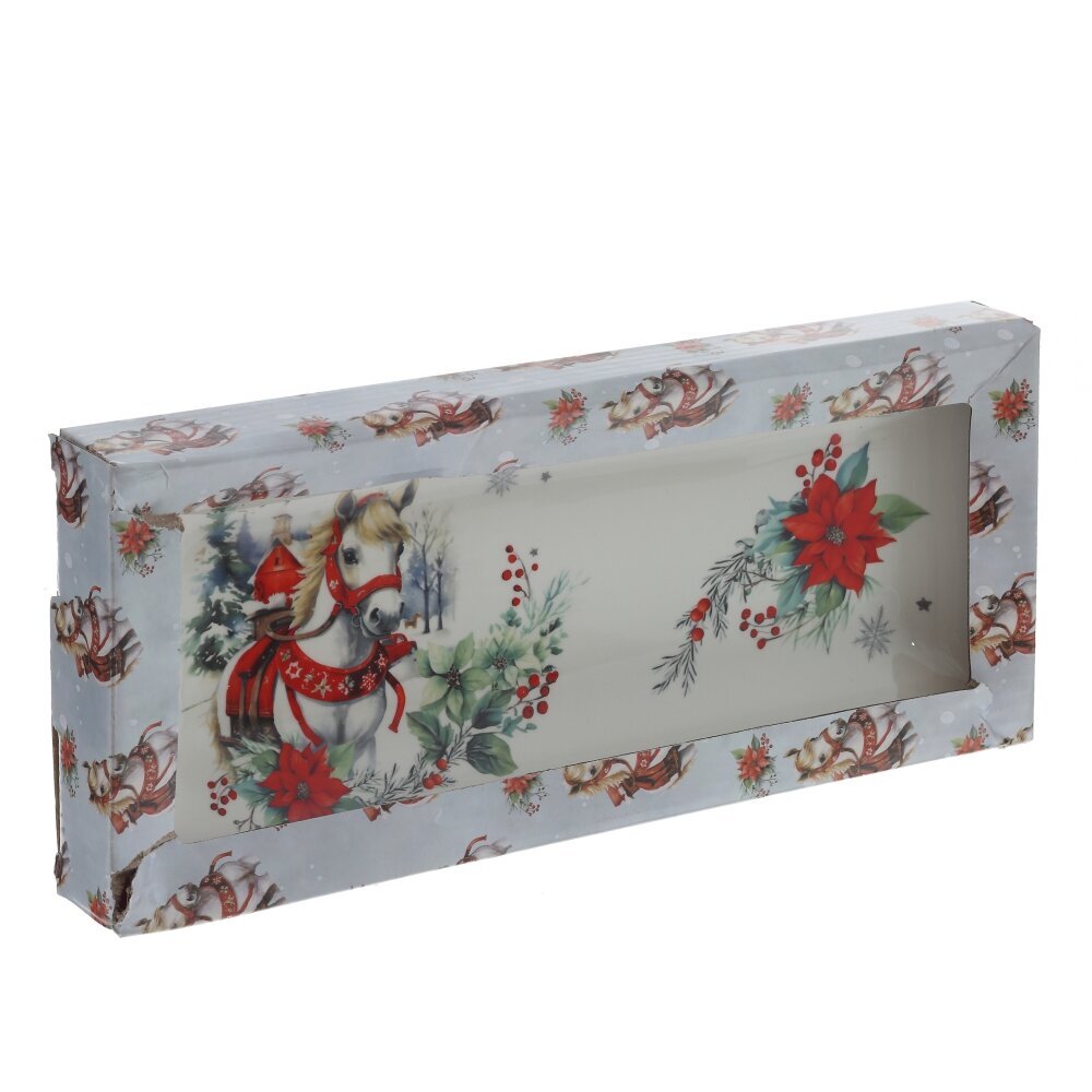 Праздничное блюдо с новогодним декором и символом 2026 года — изящной лошадкой — станет прекрасным дополнением праздничного интерьера или оригинальным подарком к Новому году. Изготовленное с вниманием к деталям, оно украшено яркими зимними элементами: снежинками, веточками и праздничными акцентами, создающими волшебное настроение. Блюдо упаковано в стильную подарочную коробку, что делает его готовым решением для подарка родным, коллегам или друзьям. Символ года — лошадка — символизирует силу, стремление вперёд и благополучие, придавая изделию особую смысловую ценность.