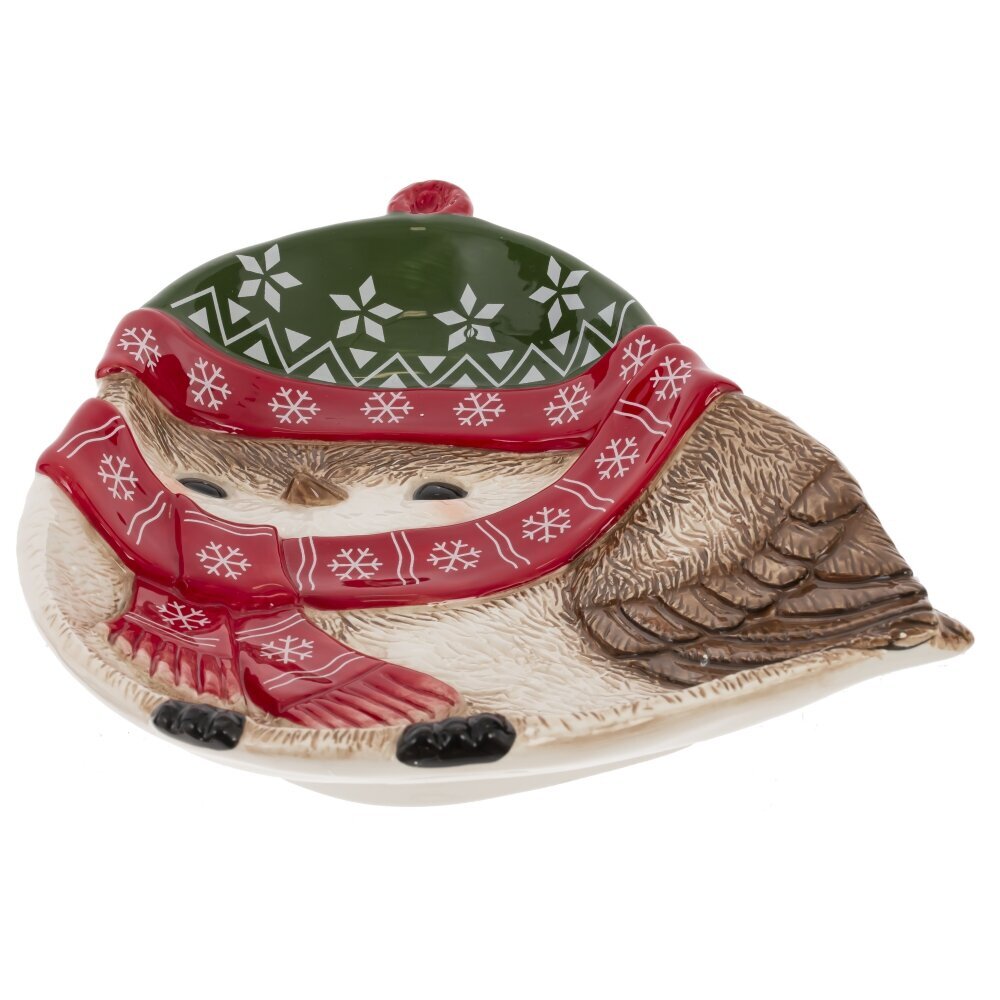 Керамическое блюдо в виде очаровательной птички станет оригинальным и стильным подарком на Новый год и зимние праздники. Птичка украшена вязаной шапочкой и шарфиком, что придаёт ей уютный и милый зимний образ. Изделие отличается высоким качеством исполнения и приятной текстурой, идеально подходя для подачи сладостей или небольших угощений. Такое блюдо не только функционально, но и станет ярким декоративным элементом праздничного стола или интерьера, создавая тёплую атмосферу и подчеркивая заботу о близких. Его нежный дизайн и зимняя тематика делают его прекрасным сувениром, который будет радовать своих владельцев долгое время.