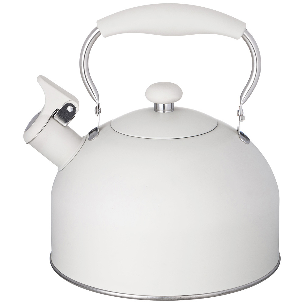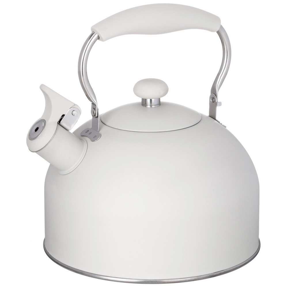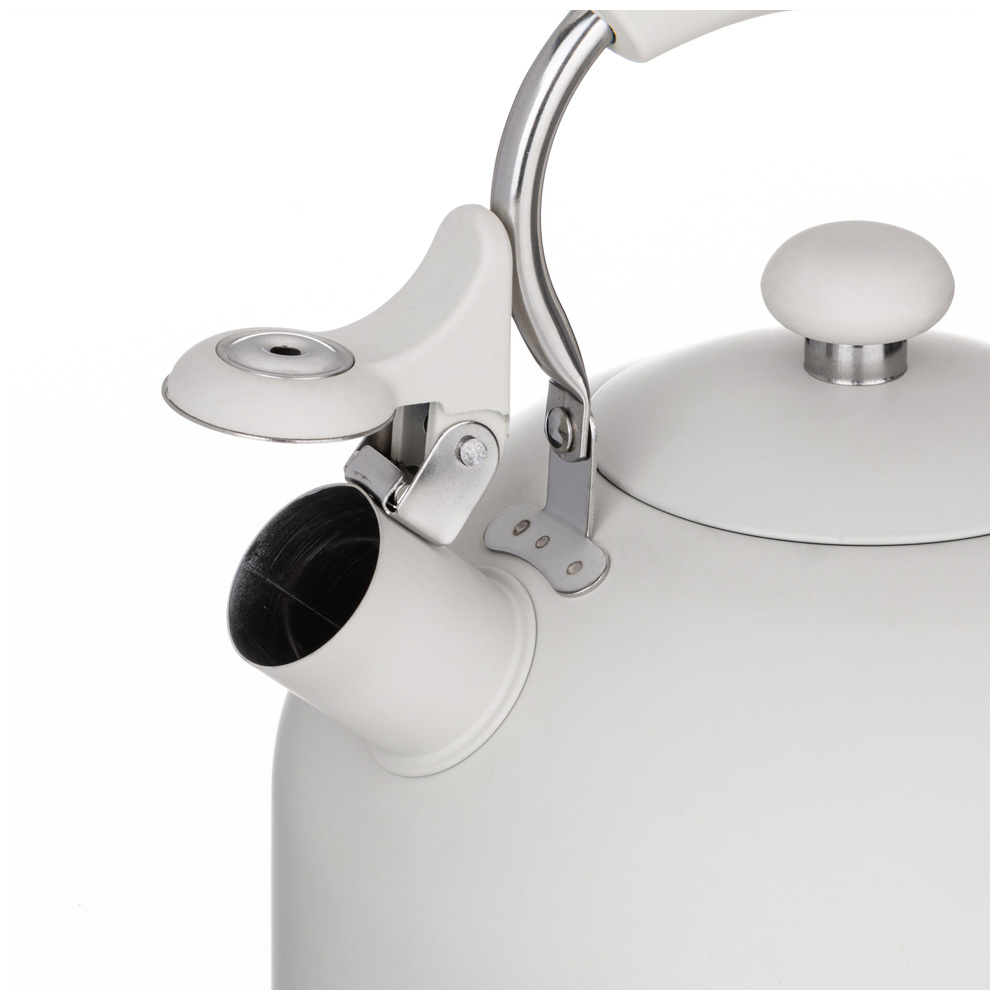 Чайник Agness оборудован свистком для определения закипания воды и изготовлен из высококачественной нержавеющей стали. Корпус из данного материала долговечен, не подвергается коррозии и обладает антиаллергенными свойствами. Ручка модели фиксированная и имеет эргономичную форму, за счет чего удобно ложится в ладонь. На ней находится механизм открытия носика-свистка.