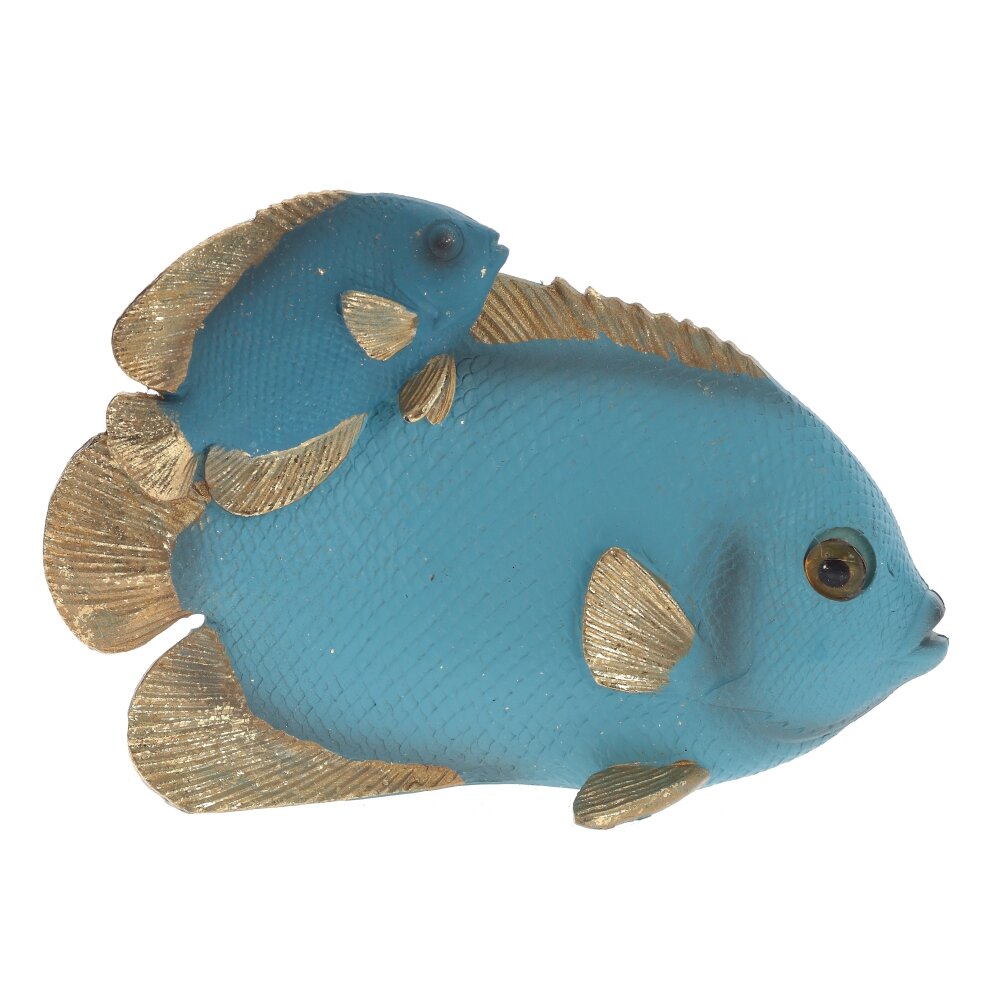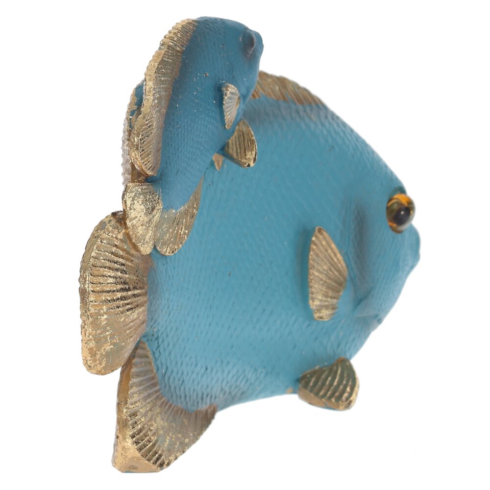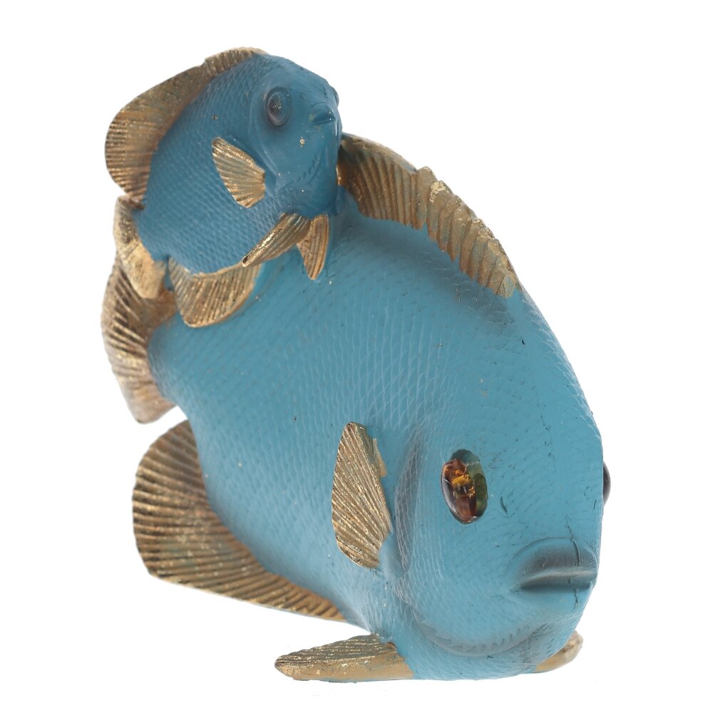 Очаровательная декоративная композиция из полимерных материалов в голубых тонах – изысканное украшение любого интерьера! Малые габариты (размер 15,5*6*11 см) позволяют разместить ее даже в небольшом пространстве. Стильная фигурка двух рыбок станет прекрасным акцентом на полке, столе или каминной стойке. Изящно исполненная деталь декора добавит помещению нотку утонченности и гармонии. Сделайте свой дом еще уютнее с этим стильным аксессуаром, созданным в Китае.