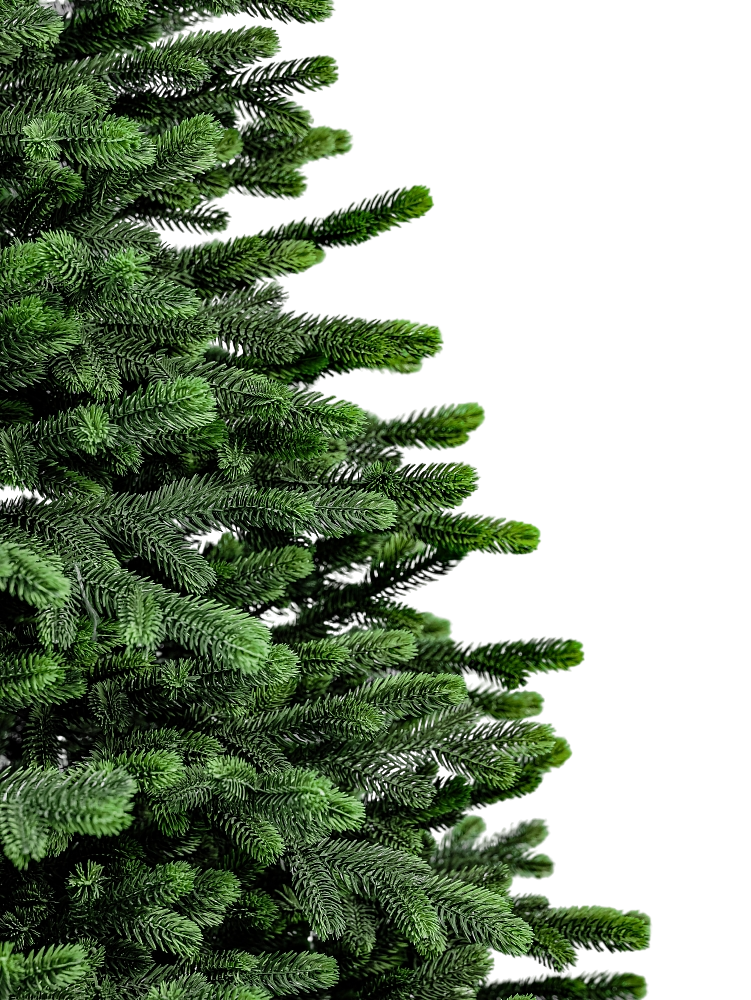 Классические зеленые ели элегантной конической формы. Уникальной особенностью этих ёлок является вариация цвета - иглы веток имеют красивый зеленый градиент с цветовыми переходами. К концам ветки ели становятся светлее, создавая впечатление молодого прироста и ощущение свежего леса, структура ветвей в виде настоящих вечнозеленых игл создает природный эффект – все это придает искусственным елям натуральность и они выглядят как настоящие хвойные деревья.