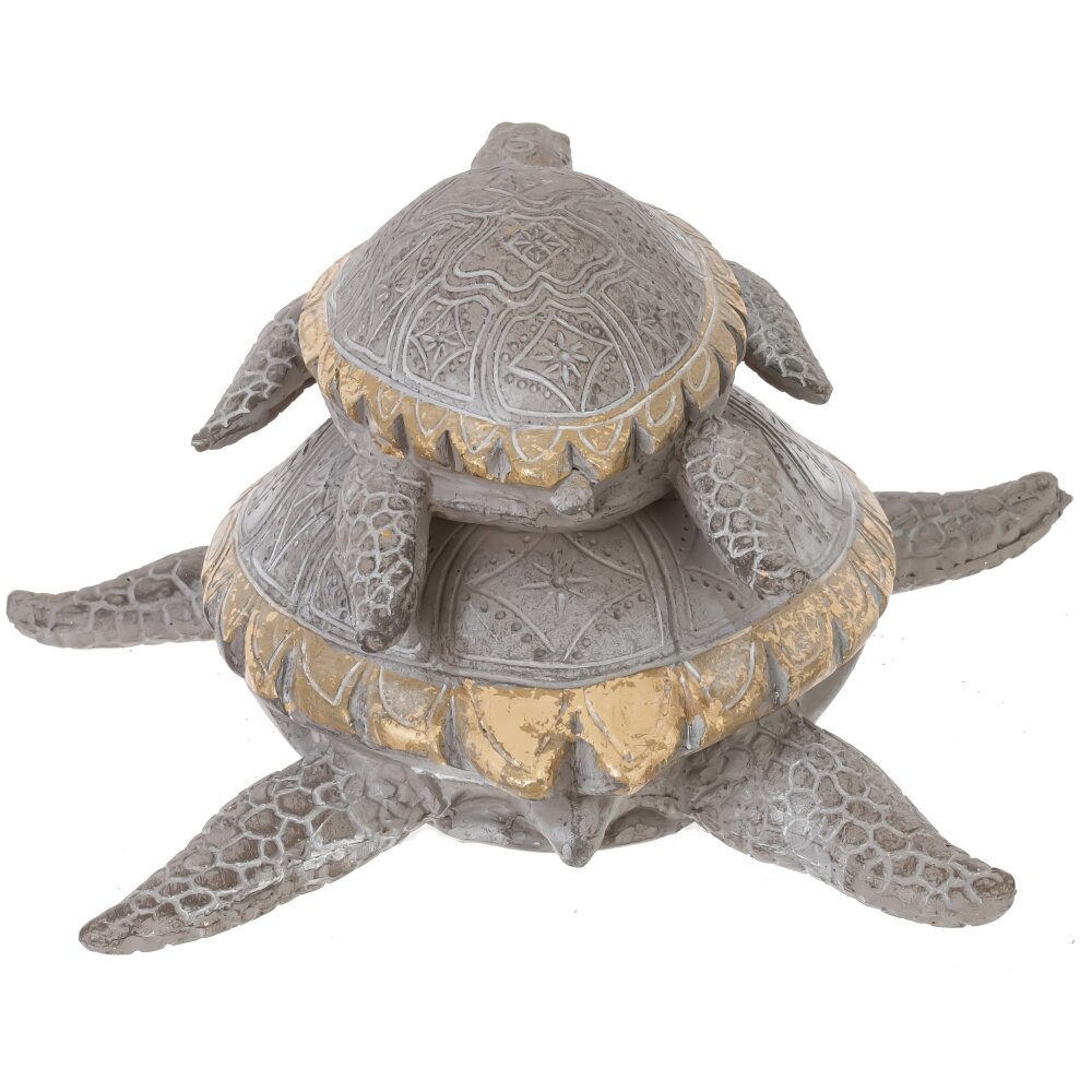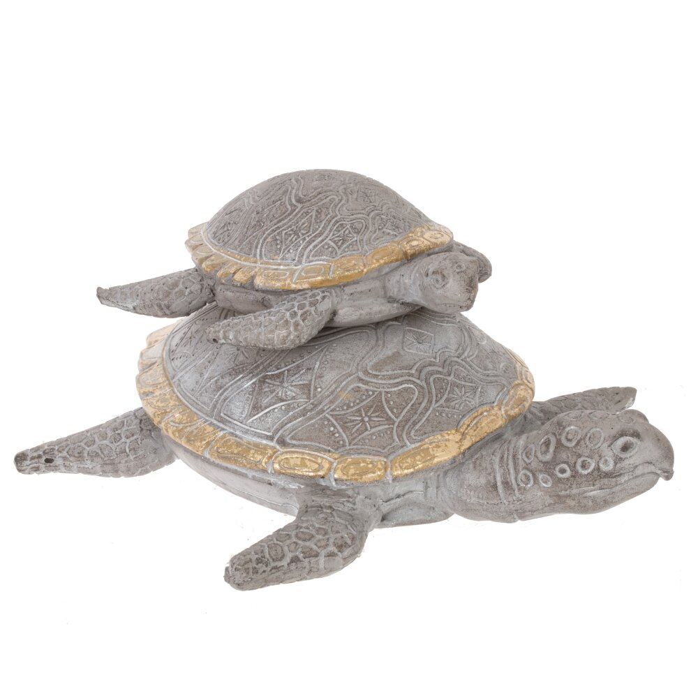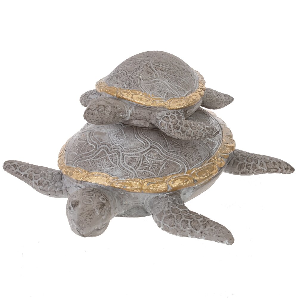 Декоративная фигурка "Черепахи" – стильное и оригинальное украшение для интерьера. Изготовлена из прочных полимерных материалов, что обеспечивает ее долговечность и устойчивость к внешним воздействиям. Фигурка выполнена в серо-золотистых тонах с детализированным орнаментом на панцире, который придает ей элегантный и изысканный вид. Такая фигурка станет прекрасным дополнением к вашему дизайну, создавая уют и гармонию.