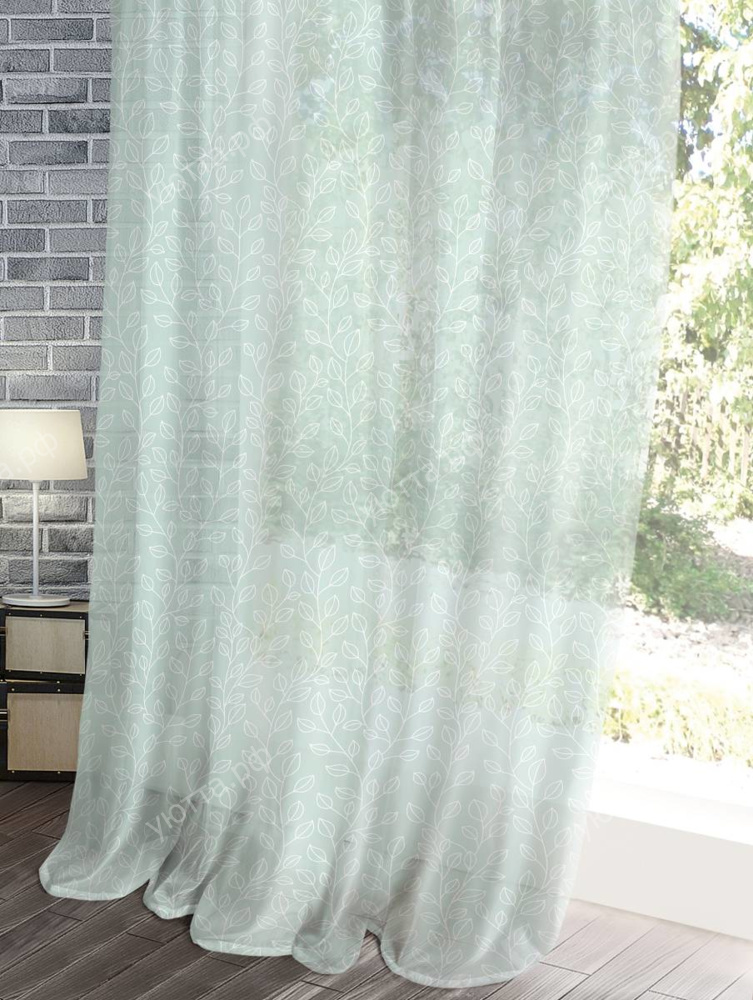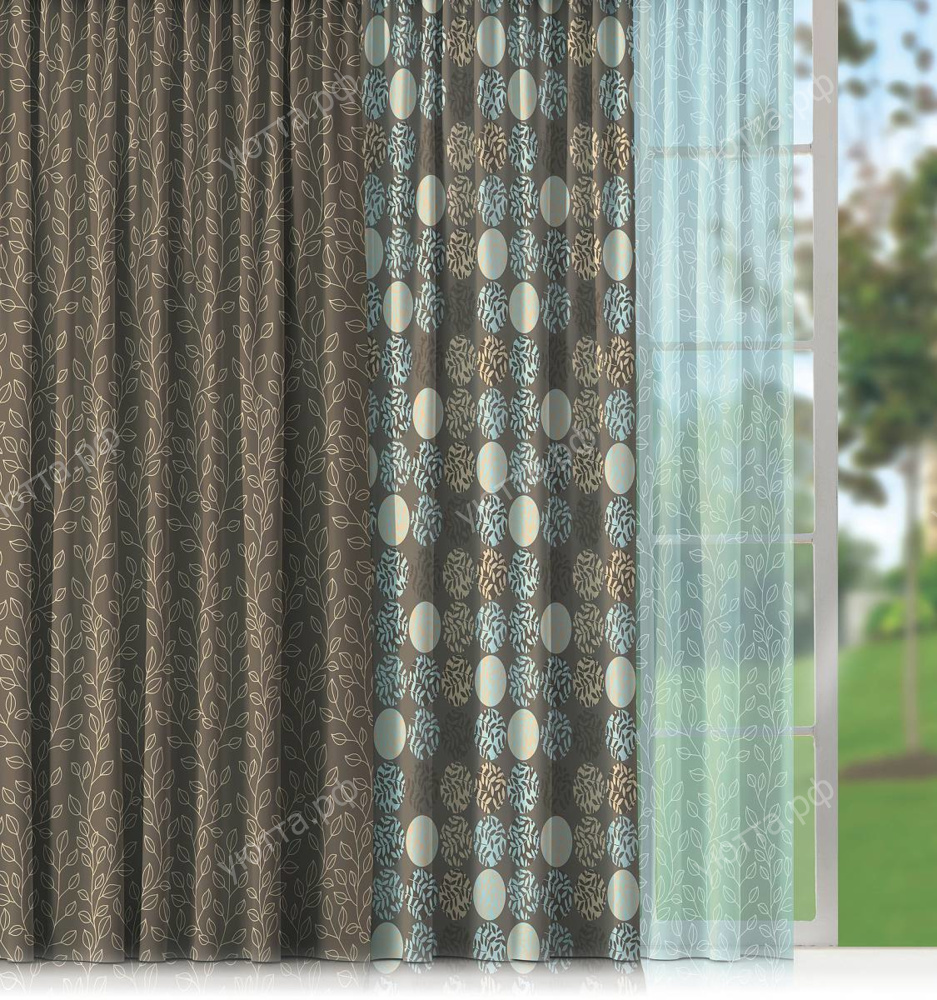 Классические природные контуры листвы в теплых оттенках. Акцентирующий шоколадный цвет дополняется элементами бирюзы. Мягкие бирюзовые тона ненавязчиво выделяют нужные детали в помещении. Тонкий и легкий материал вуаль не препятствует прохождению света, приятный на ощупь и легко драпируется.