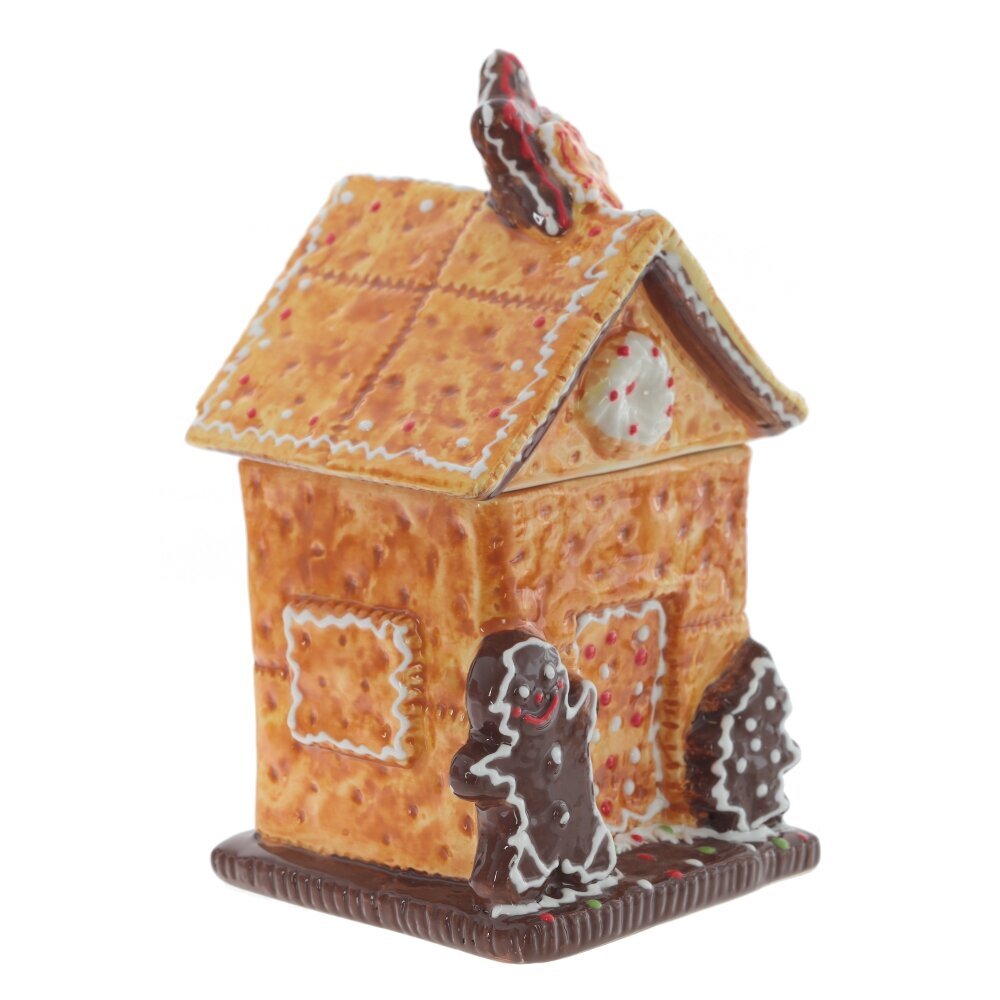 Керамическая конфетница "Пряничный домик" на 700 мл с праздничным рождественским дизайном. Она выполнена в коричневой цветовой гамме в форме домика.