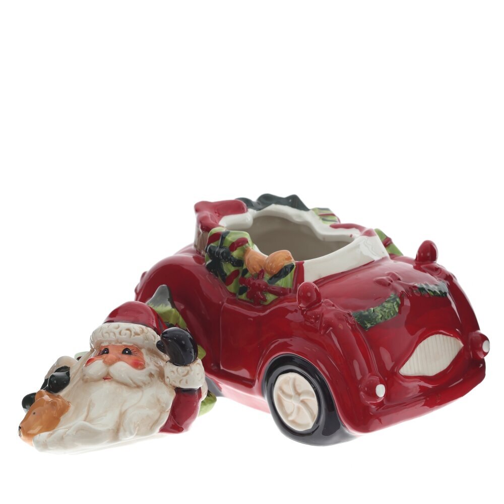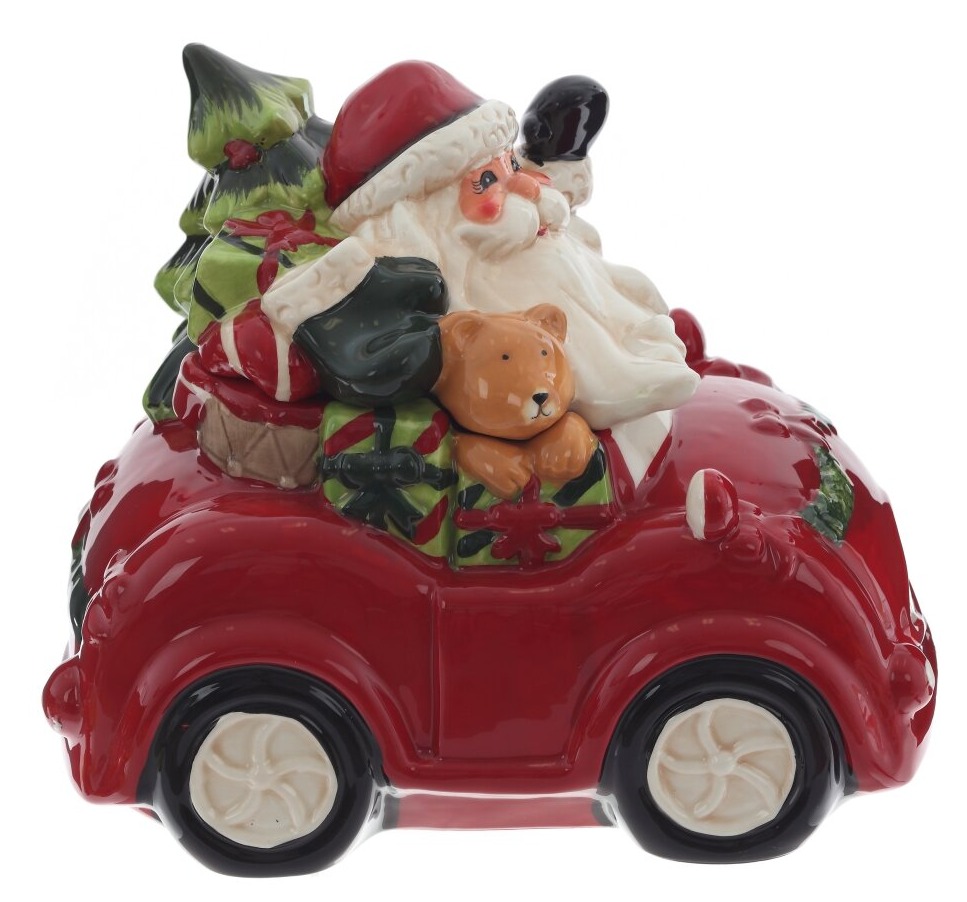 Конфетница в виде фигурки автомобиля с новогодними персонажами станет ярким украшением праздничной сервировки и отличным подарком на Новый год или Рождество. Она выполнена из прочной керамики и покрыта глазурью, которая придает ей нарядное глянцевое сверкание.
