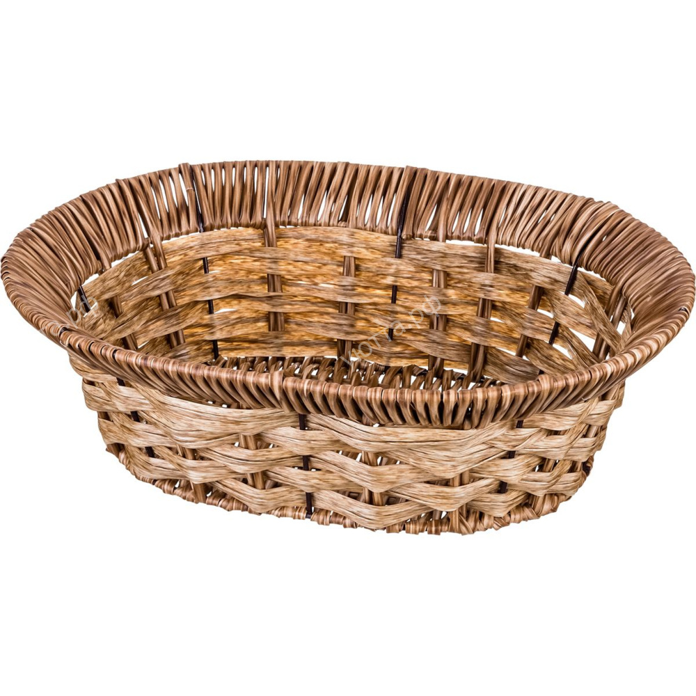 Стильная и удобная плетеная корзина, изготовлена из пластика. Можно использовать как для хранения вещей и продуктов, так и в качестве декоративных элементов в доме.
