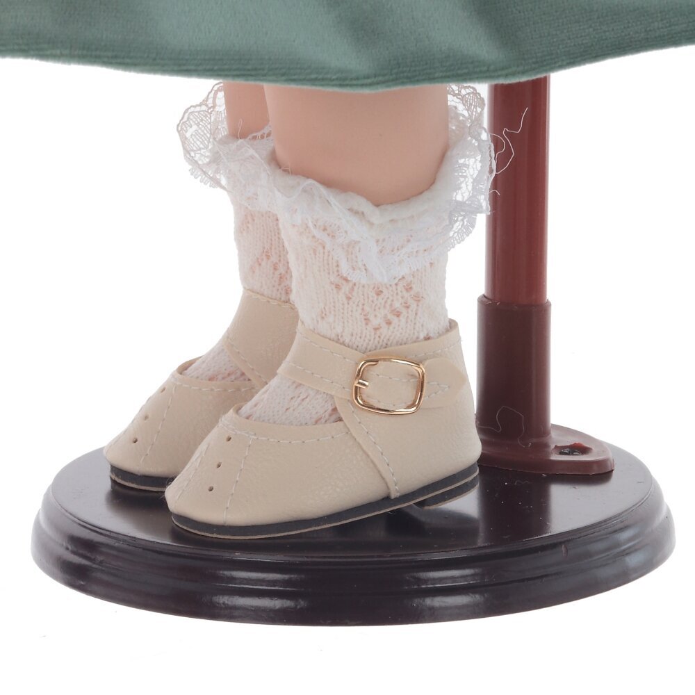 Кукла, созданная с любовью и вниманием к деталям. Она очаровывает своим нежным взглядом, милой улыбкой и трогательной простотой. Платье, украшенное кружевом и цветочным принтом, подчёркивает женственность и изящество куклы. Деревянная подставка, на которой стоит кукла, добавляет ей устойчивости и завершает образ. Кукла станет чудесным подарком женщинам или девочкам. Она украсит любой интерьер и подарит своим обладателям тепло и душевную радость.
