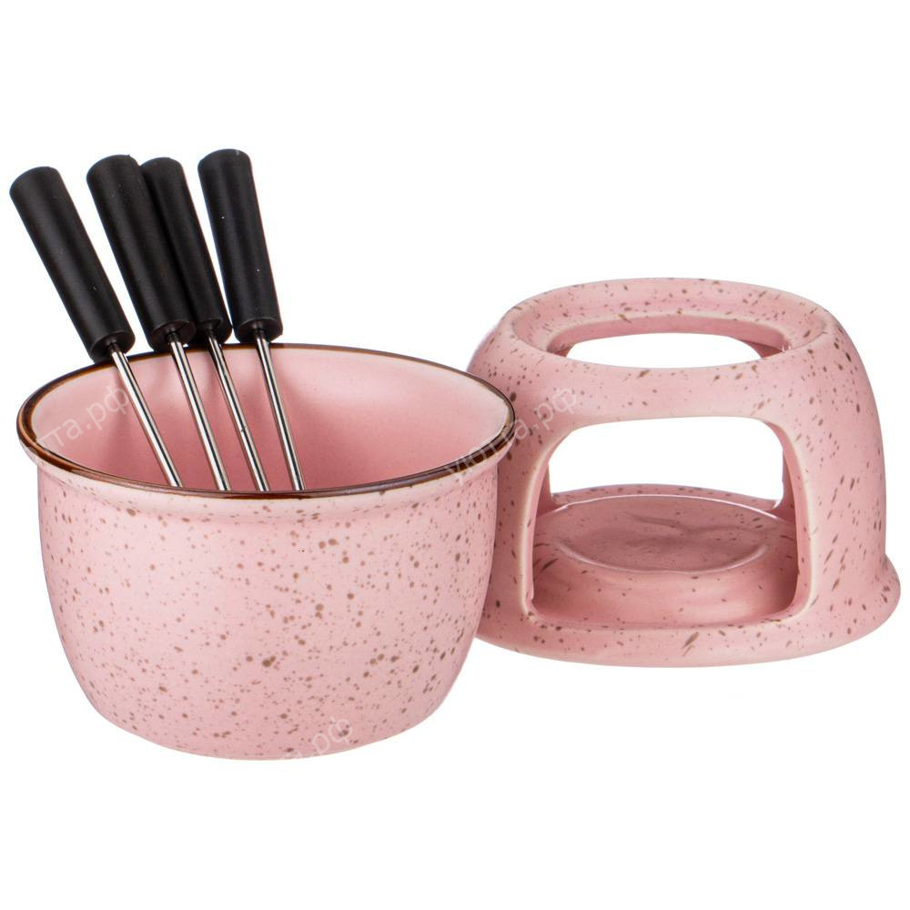 В набор входит небольшая кастрюлька объемом 270 мл, подставка, вилочки для фондю 4 шт.