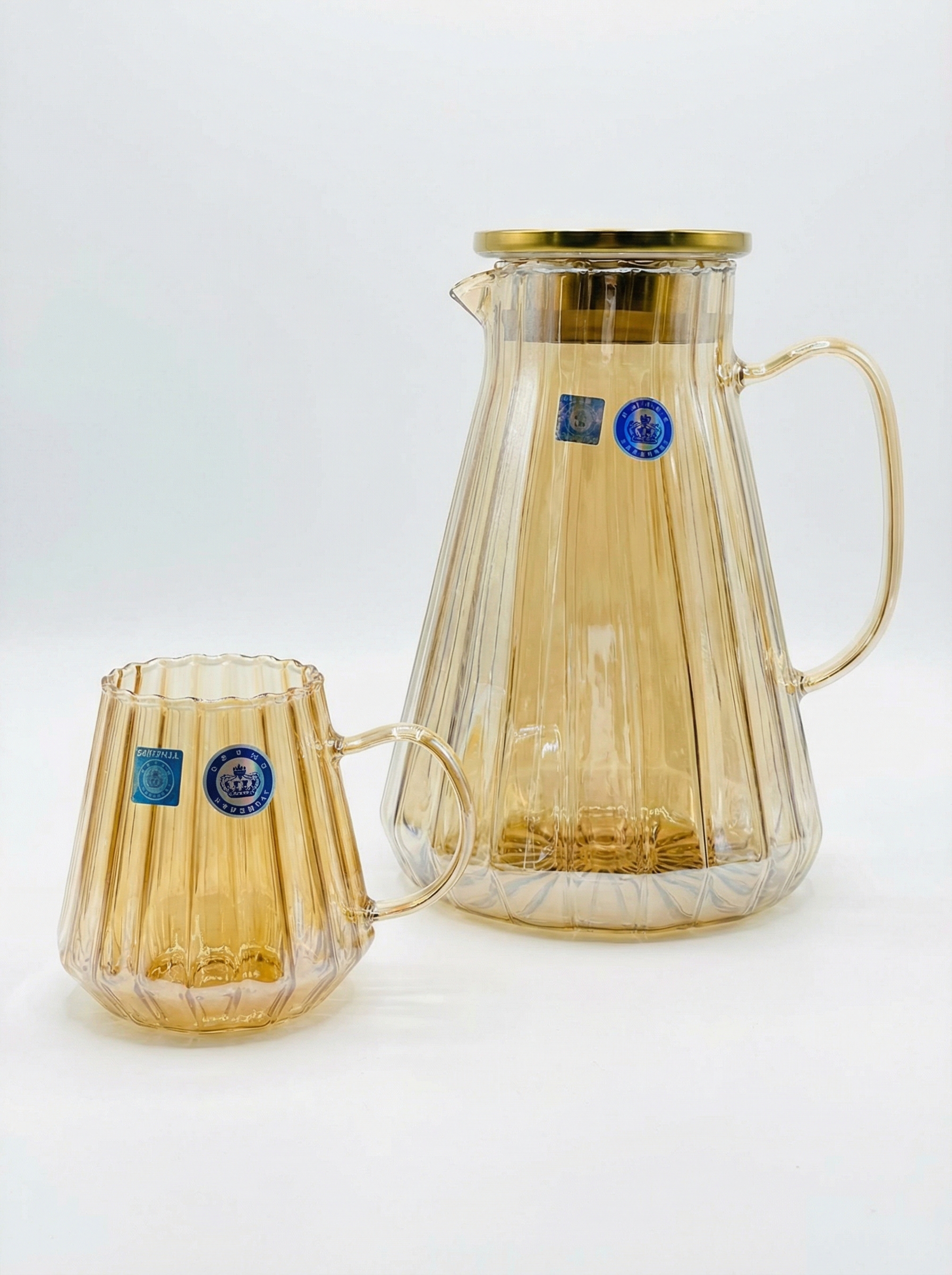Набор графин 1700 мл и 6 кружек 370 мл - Золотистый