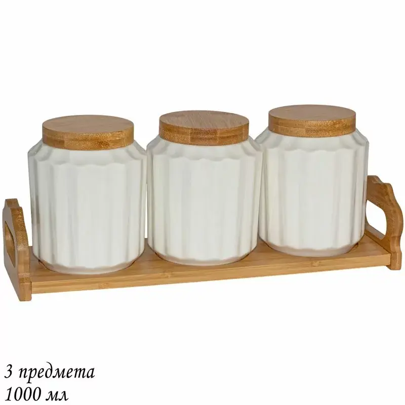 Набор состоит из трех банок для сыпучих продуктов. Изделия выполнены из фарфора привлекательной формы. Фарфор - это экологически чистый материал, который не наносит вред вашему здоровью. Кроме того, этот материал защищает продукты и пищу от образования вредных бактерий, которые могут испортить аромат и вкус пищи.