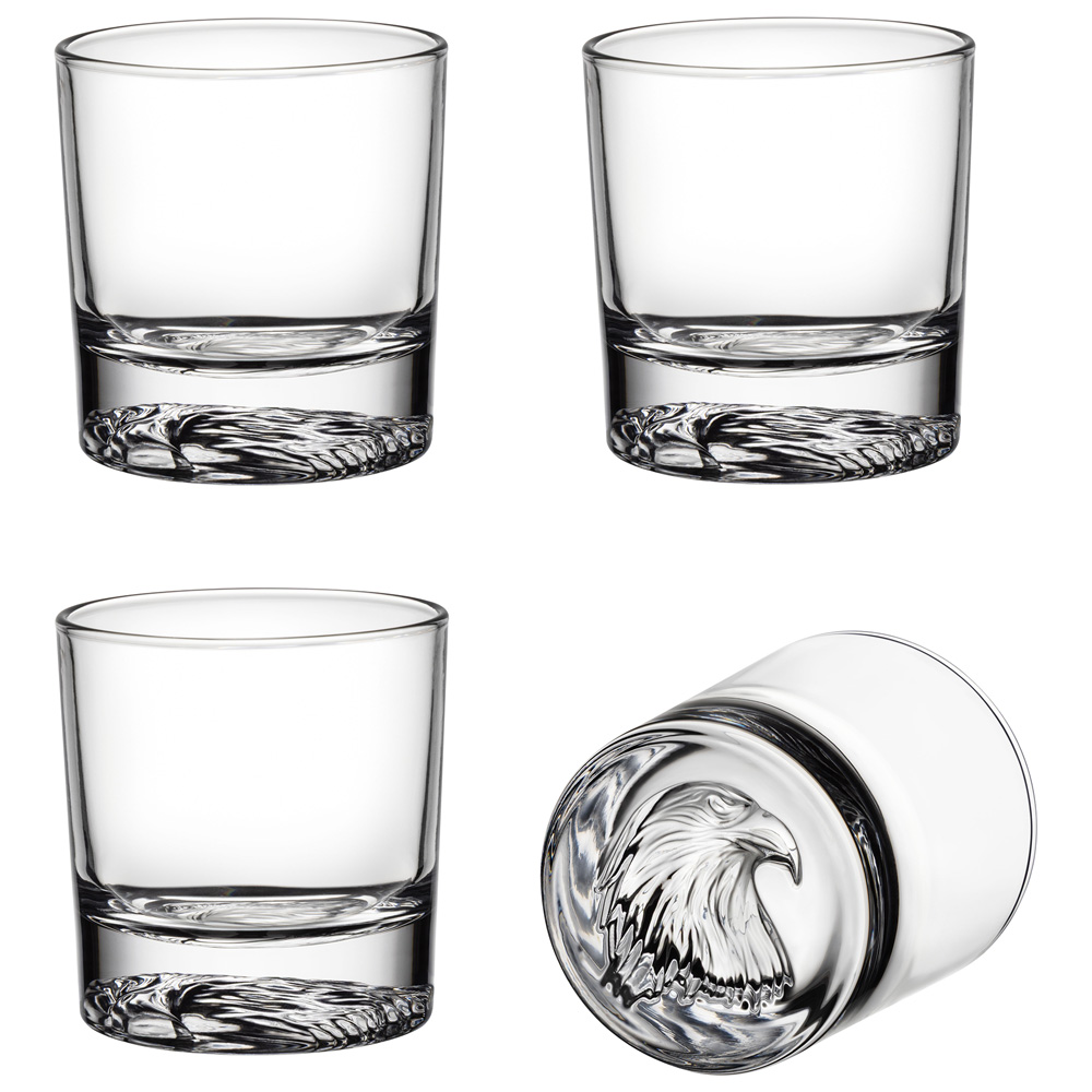 Представляем набор стаканов для виски "Eagle" — воплощение свободы, мощи и безупречного вкуса. Каждый стакан украшен рельефным изображением головы орла на дне — символа проницательности и величия. Гладкие, чистые линии стекла подчеркивают минималистичную элегантность, а рельефный элемент придает каждому стакану уникальный характер и игру света.