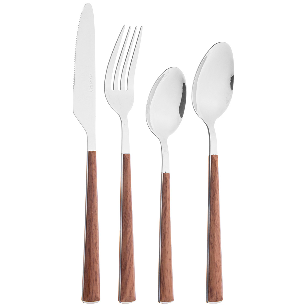 Набор столовых приборов AGNESS не только прекрасно выглядят, но и обладают отличной функциональностью. Вилки и ложки имеют комфортные ручки, которые удобно держать в руке. Каждый предмет выполнен из нержавеющей стали , что обеспечивает долговечность и устойчивость к коррозии. Набор столовых приборов является отличным выбором для кухни, где они могут быть использованы в повседневной жизни или во время особых событий и праздников. Они также подходят для ресторанов и кафе, добавляя шарма и элегантности к сервировке стола. Благодаря своей прочности и изысканному дизайну, этот набор столовых приборов станет вашим надежным и стильным спутником на многие годы.Чтобы приборы прослужили долго необходимо соблюдать ряд правил по уходу: использовать мягкие материалы, щадящие моющие эко вещества, замачивать застарелые пятна, исключая механическое воздействие. Запрещается использовать абразивные и хлоросодержащие средства.