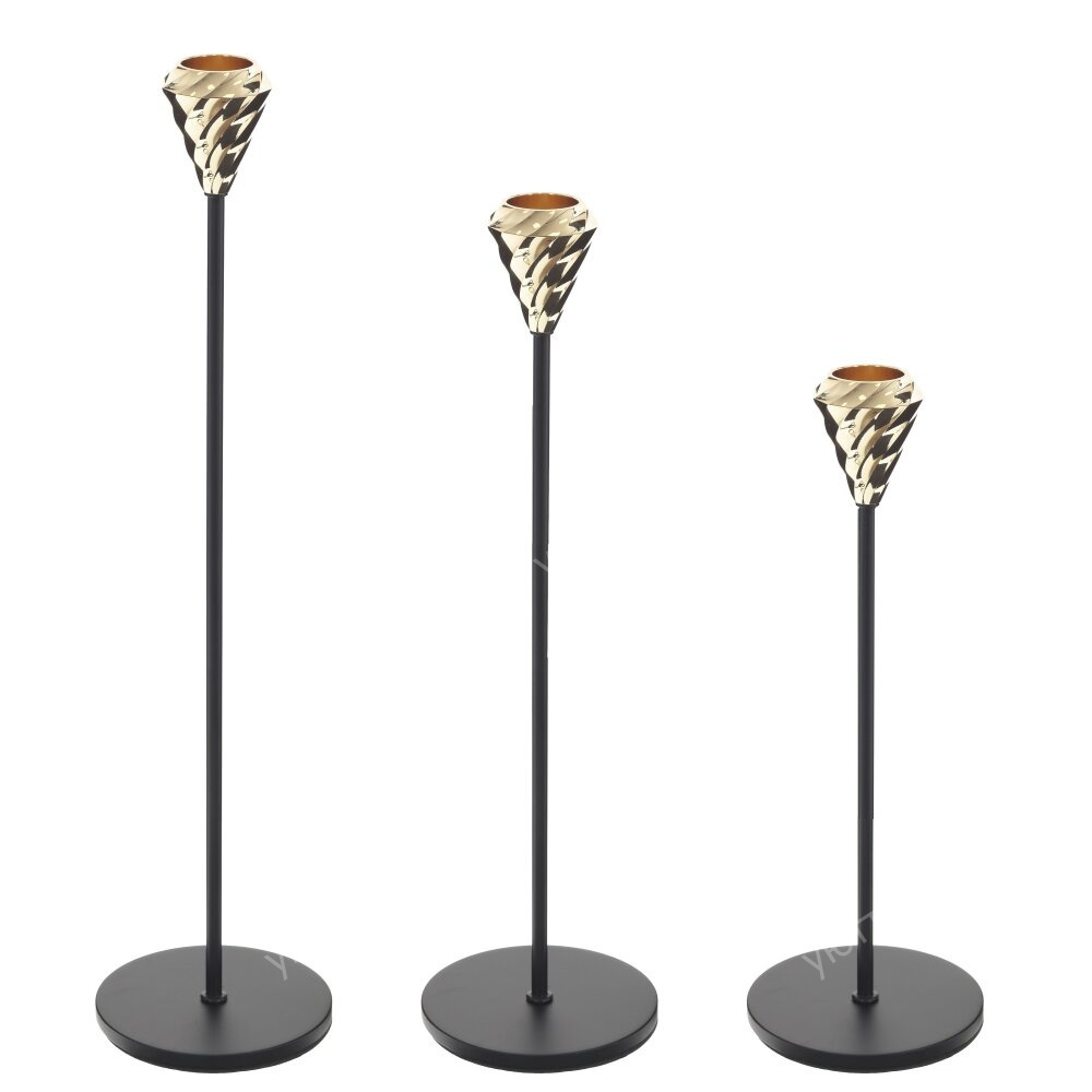 Оригинальный и изысканный набор из трех металлических подсвечников на ножке позволит украсить интерьер Вашего дома. С таким элементом декора ужин при свечах наполнится торжественной и праздничной атмосферой. А также станет отличным подарком для ваших близких и друзей. Диаметр свечи 2 см. Размеры подсвечников: 8*8*23/28/33 см.