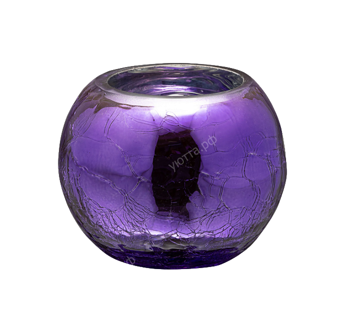 Подсвечник стеклянный кракелюр (Высота 8,5 см) - Фиолетовый