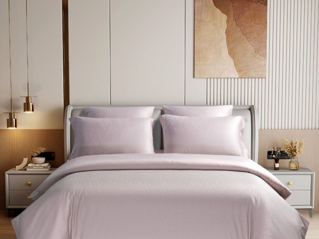 Новая серия из хлопкового жаккарда выполнена из прочной ткани с благородным блеском в розово-бежевом цвете. Лаконичный рисунок ткани будет уместно смотреться как в классическом интерьере, так и в минимализме.