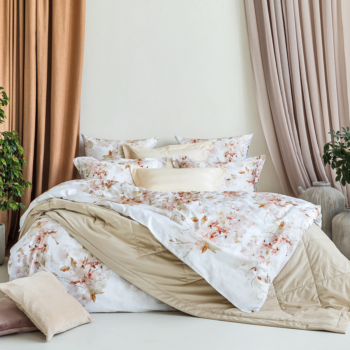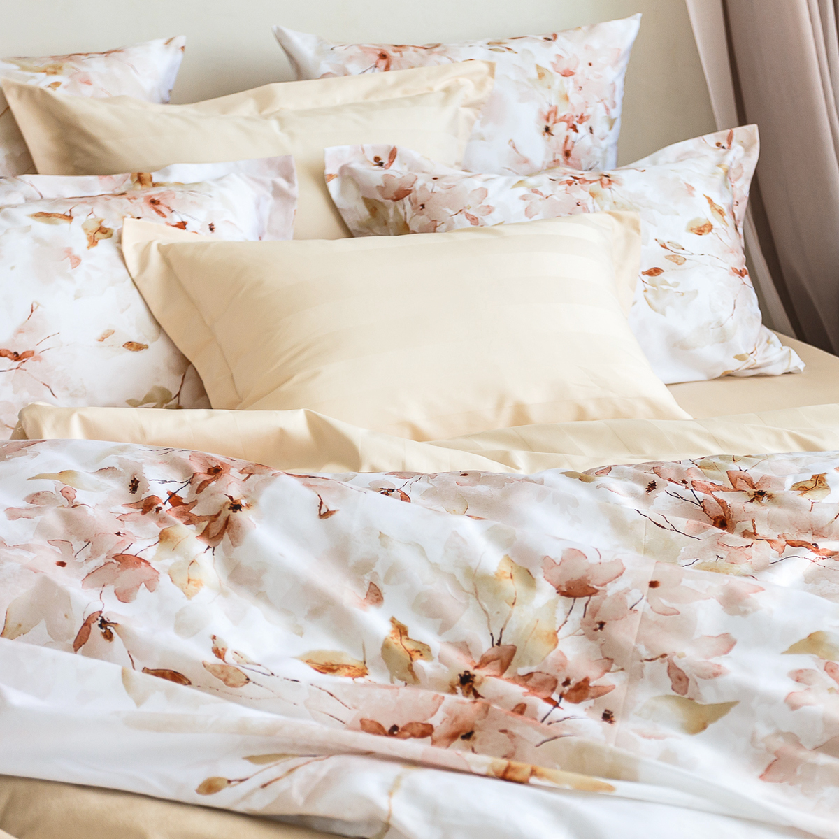 Тонкая 60-я нить и плотность ткани в 300 ТС делают мако-сатин невероятно мягким и приятным на ощупь. Специальная скрутка нити обеспечивает нежность, которая сохраняется даже после множества стирок. Это идеальный выбор для самой чувствительной кожи – ткань пропускает воздух, поддерживая комфортную температуру тела в любое время года, и является гипоаллергенной.