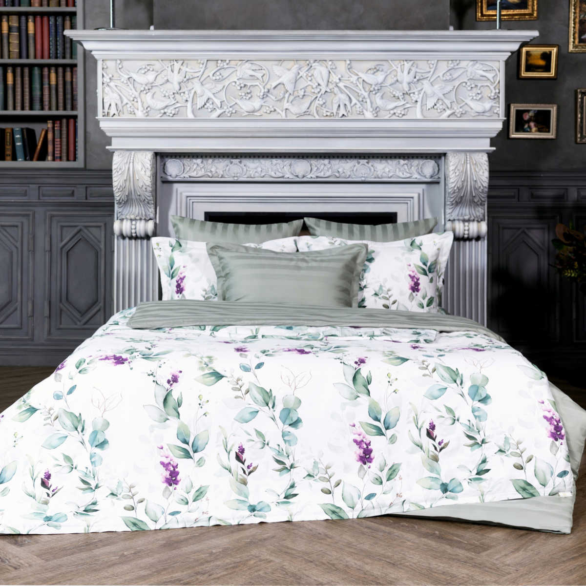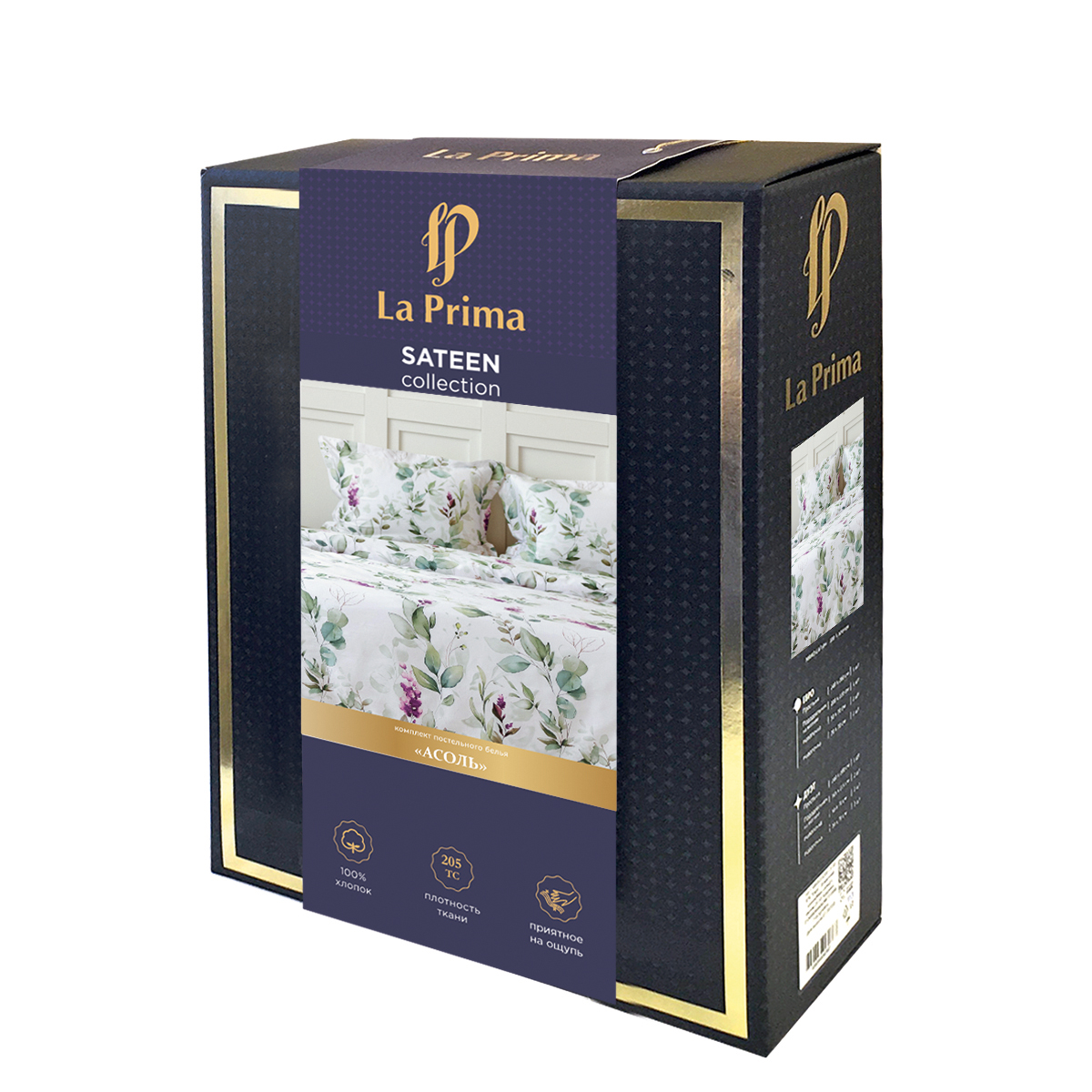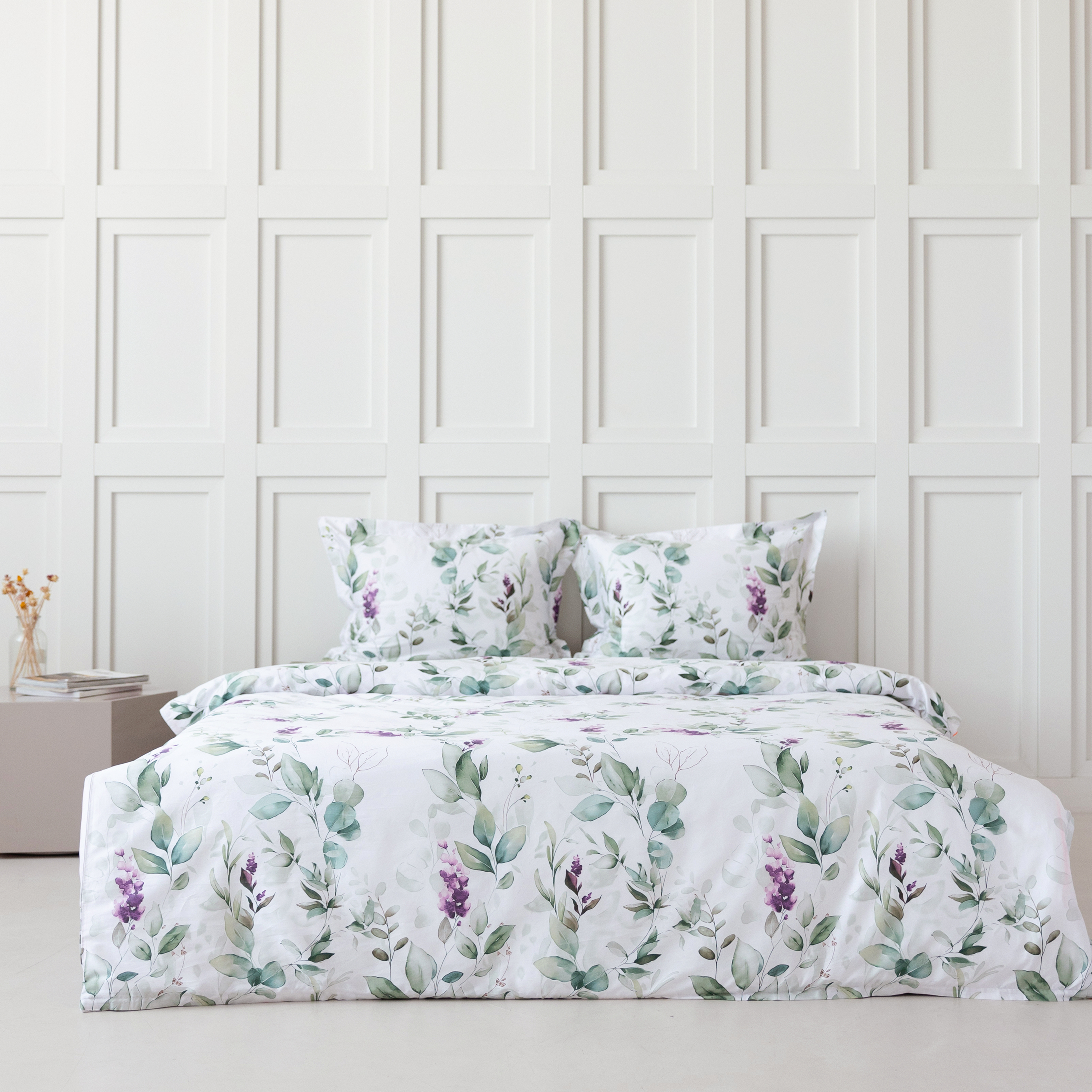 Роскошный комплект постельного белья Асоль из люкс-сатина - изящный и нежный акварельный растительный принт на белоснежном фоне вдохновляет утренней свежестью и романтичным флером.