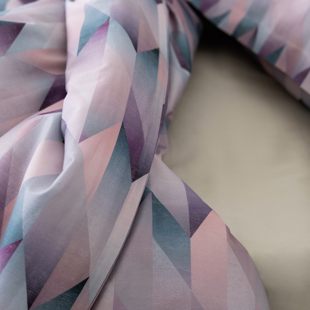 Постельное белье «Саймон» — это воплощение гармонии, где мягкость оттенков встречается с четкостью линий. Градиентные переливы создают игру света, словно в хрустальном лабиринте, добавляя объем и глубину.