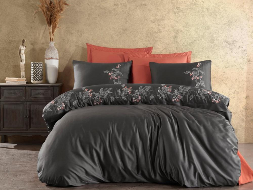 Постельное бельё с вышивкой Dantela Vita "Efra" сатин евро - Антрацит