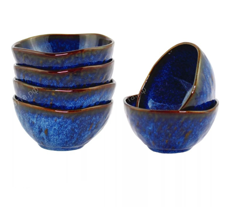 Коллекция Aquamarine изготовлена их фарфора, покрыта глянцевой цветной глазурью глубокого синего цвета с вкраплениями. Структура поверхности изделий имеет рельеф. Благодаря прочной и глянцевой глазури посуду легко мыть.