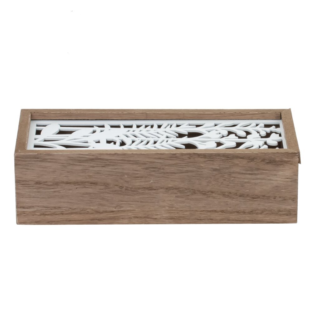 Шкатулка изготовлена из дерева и окрашена в приятный бежевый и белый цвета. Внутри шкатулки одно отделение, позволяющие организовать хранение украшений, мелочей или других ценных предметов. Эта шкатулка является не только функциональным предметом для хранения, но и стильным аксессуаром для вашего интерьера. Ее дизайн и цвет придают ей особый шарм и индивидуальность. Благодаря компактным размерам, она легко впишется в любой декор и станет изысканным украшением вашего жилища.