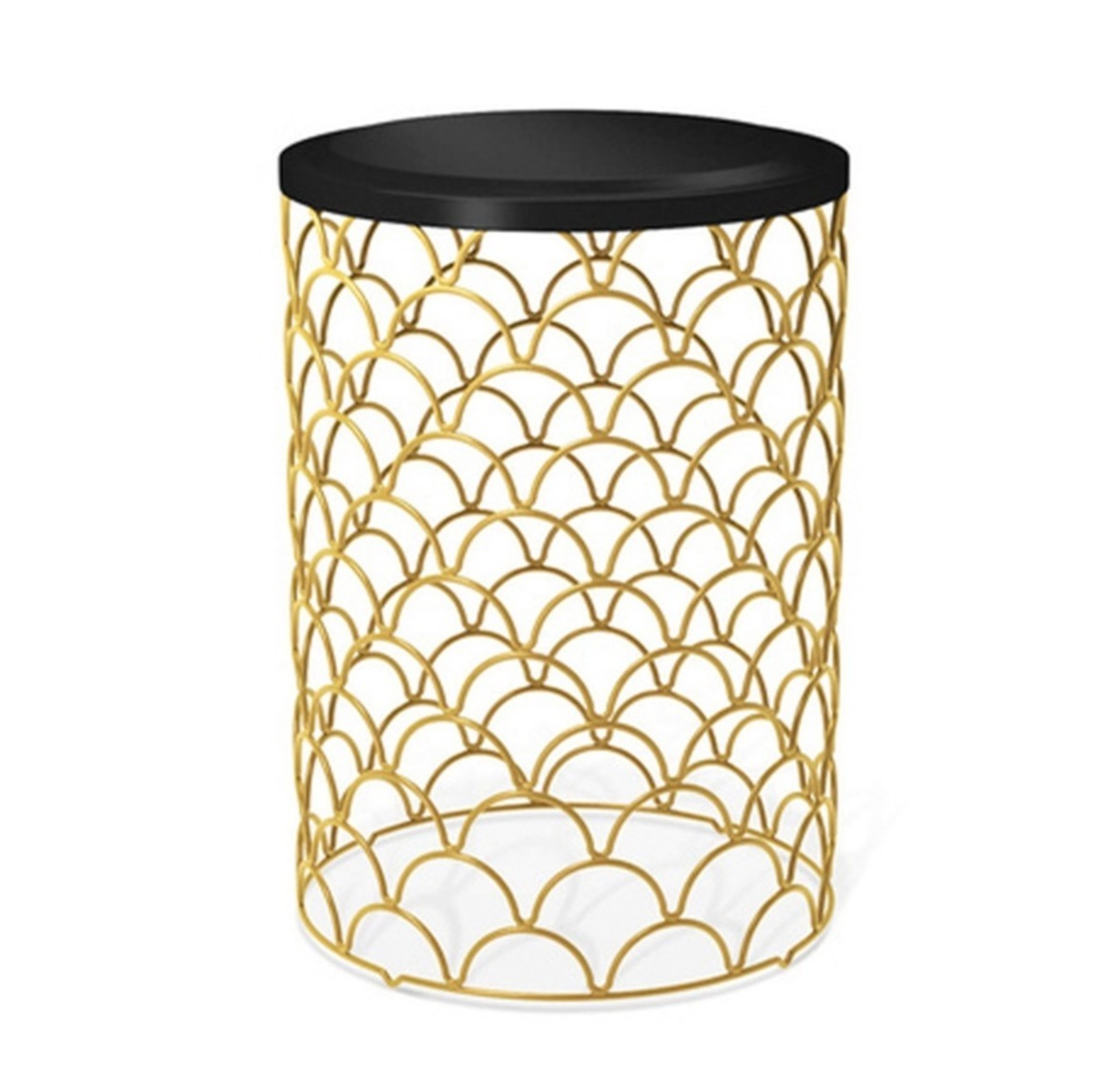 Отличительная особенность столика – золотое основание в стиле арт-деко в форме усеченного цилиндра. Оно выполнено из фигурно изогнутых металлических прутьев. Орнамент напоминает чешую фантастической рыбы или пайетки на вечернем платье. Металлический каркас и столешница окрашены порошковой краской, устойчивой к механическому воздействию. Столик легко поднять и перенести в любое место дома или офиса. Диаметр столешницы 350 мм. Столик полностью разборный. Легко собрать и разобрать обратно.