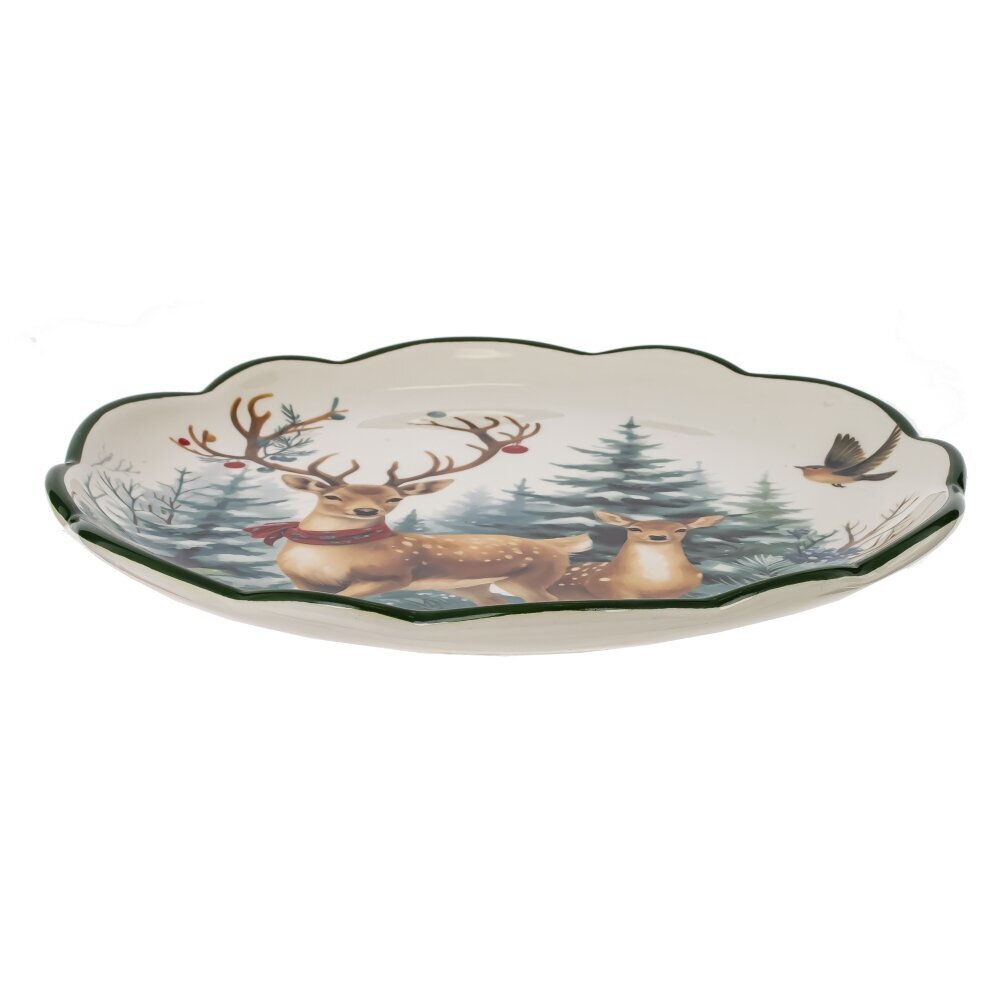 Праздничная тарелка с новогодним декором и изящными оленями станет прекрасным дополнением праздничного интерьера или оригинальным подарком к Новому году. Изготовленное с вниманием к деталям, оно украшено яркими зимними элементами: снежинками, веточками и праздничными акцентами, создающими волшебное настроение. Блюдо упаковано в стильную подарочную коробку, что делает его готовым решением для подарка родным, коллегам или друзьям.