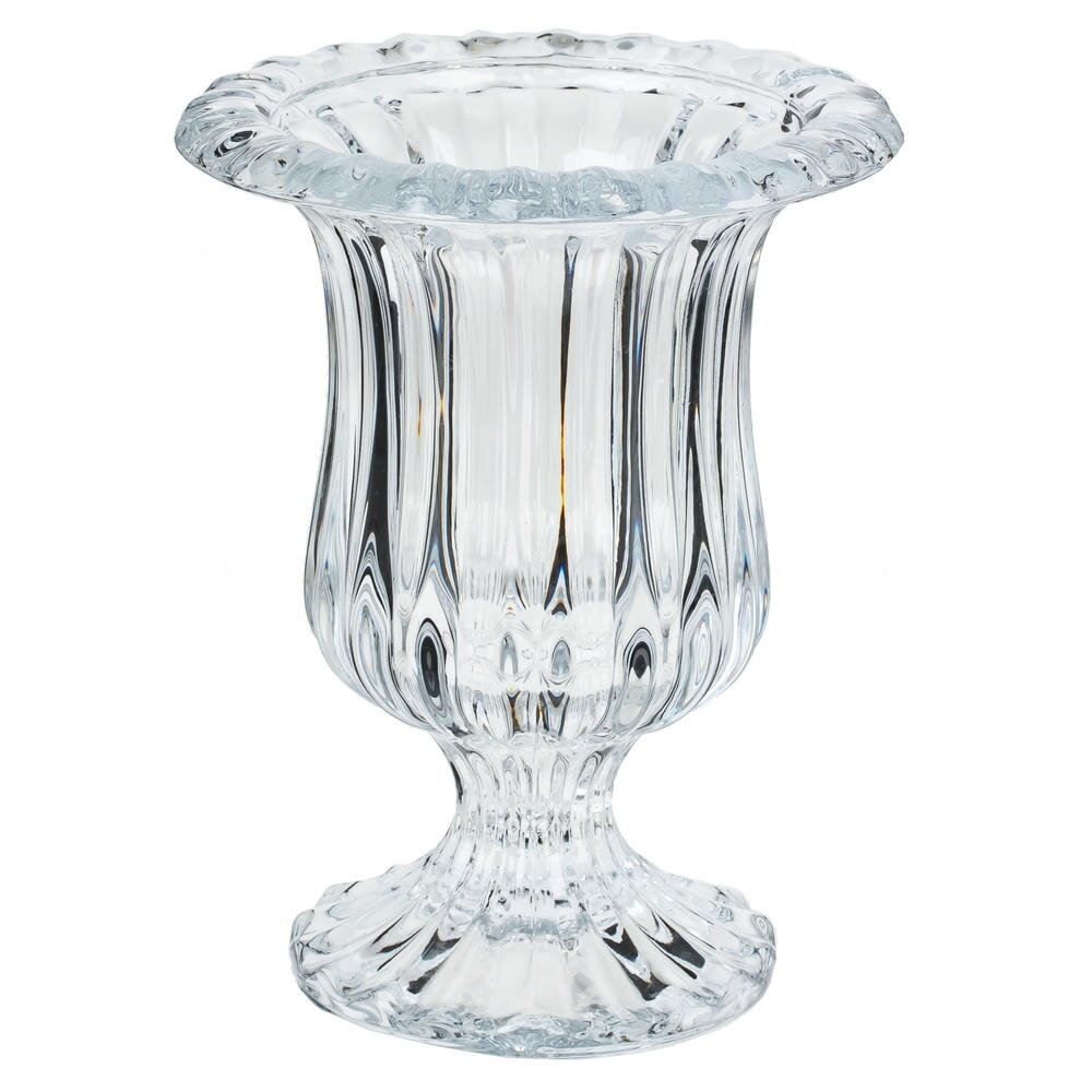 Элегантная мини-ваза из прозрачного стекла объемом 220 мл. Классическая форма кубка на устойчивой ножке подчеркивается рельефными вертикальными гранями, а широкий волнистый край красиво рассеивает свет и усиливает блеск. Толстое стекло делает изделие надежным и устойчивым, подходит для небольших букетов, одиночных цветов, веточек эвкалипта или сухоцветов. Компактный размер уместен на подоконнике, прикроватной тумбе, кофейном столике и в сервировке праздничного стола. Ваза также эффектно смотрится как подсвечник для свечи-таблетки или мини-композиции с водой и декоративными камнями. Рекомендуется бережная мойка без абразивов и избегание резких перепадов температур. Диаметр горловины: 5.5 см.