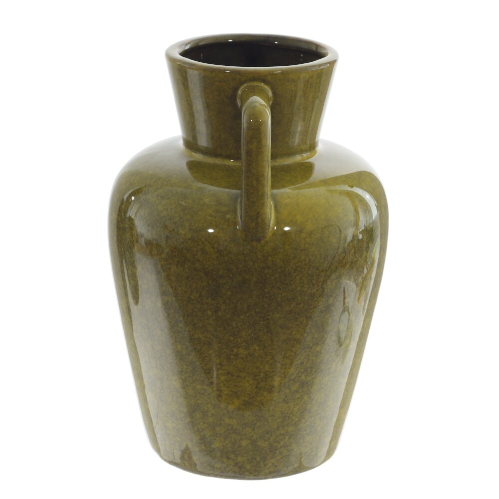 Элегантная ваза из фарфора объемом 2200 мл. Выполнена в благородном оливково-зеленом оттенке с глянцевой глазурью и легким крапчатым эффектом. Форма напоминает амфору: широкое горлышко, плавно расширяющееся тело и две удобные прямоугольные ручки. Устойчивая, с ровным дном и гладкими стенками, которые легко очищаются и не впитывают запахи. Подойдет для живых цветов, веток и сухоцветов, а также как самостоятельный интерьерный акцент. Нейтральный цвет гармонирует с минималистичными, эко и ретро интерьерами, подчеркивает природные оттенки букетов. Объем 2,2 л обеспечивает достаточный запас воды для средних и крупных композиций. Отличный выбор для дома, офиса или в качестве подарка.