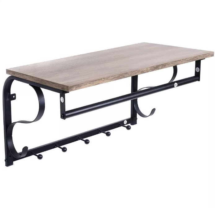 Настенная вешалка сочетает в себе полку (66 x 30 см), штангу и 5 крючков, чтобы удовлетворить ваши различные потребности. Используйте верхнюю полку для семейных фотографий, крючки для повседневных пальто и сумок и перекладину для вешалок, чтобы удерживать изящные куртки и свитера.