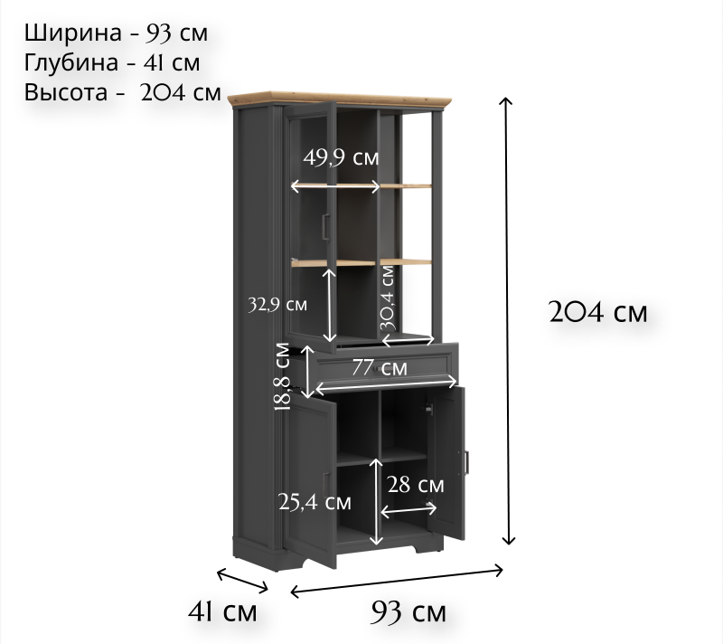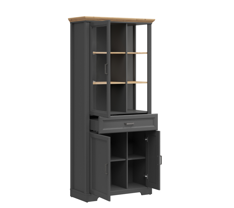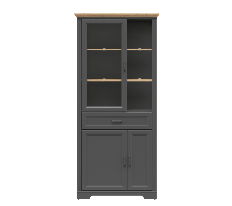 Откройте новые возможности хранения с витриной «Jasmin»! В стильном графитовом цвете с элементами дуба артизан она станет изюминкой вашего интерьера. Выполненная из качественных материалов (ЛДСП, МДФ), эта модель предлагает просторное внутреннее пространство и удобный вместительный ящик. Производство – Беларусь. Размер: ширина 930 мм, глубина 410 мм, высота 2040 мм. Идеальное решение для эффективного использования пространства дома или дачи!